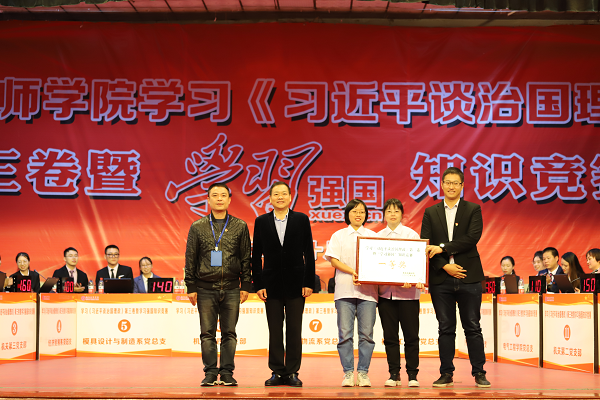 黨委書記何東球(左二)為一等獎(jiǎng)獲獎(jiǎng)代表隊(duì)頒獎(jiǎng)