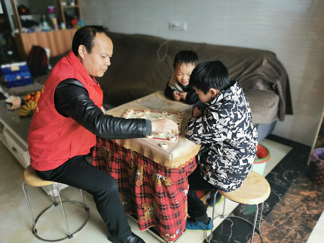活動(dòng)中,身穿“衡陽(yáng)群眾”紅馬甲的支教隊(duì)老師們分組來(lái)到留守兒童們家中,與孩子們一起制作年宵花,陪伴孩子們下象棋,打乒乓球、羽毛球,給孩子們講授防疫小知識(shí),并送去防疫物品。溫馨的“新年禮物”,結(jié)對(duì)幫扶陪伴,讓孩子們的春節(jié)不孤單。
