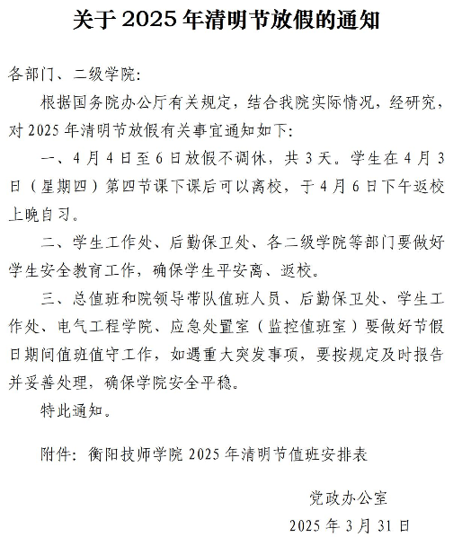 轉(zhuǎn)發(fā):衡陽技師學(xué)院清明節(jié)放假通知