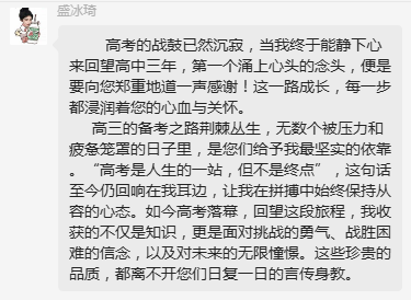 高考結束后,參考學子們帶著滿腔熱血和肺腑之言盛贊學校..........