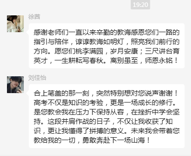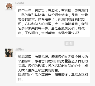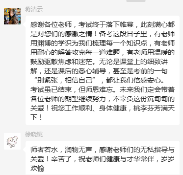 學子們微信留言,感恩學校,感恩師長