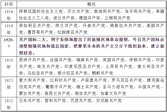 世界各地共產(chǎn)黨成立一覽表(1918-1922)