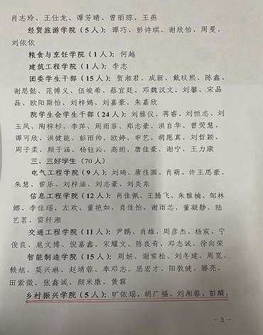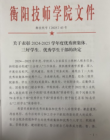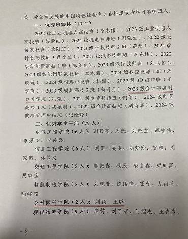 2024-2025學(xué)年度我院有以下班級和學(xué)生榮獲衡陽技師學(xué)院校級榮譽(yù)稱號,現(xiàn)特向鄉(xiāng)村振興學(xué)院和家長報(bào)喜?。。?/span>