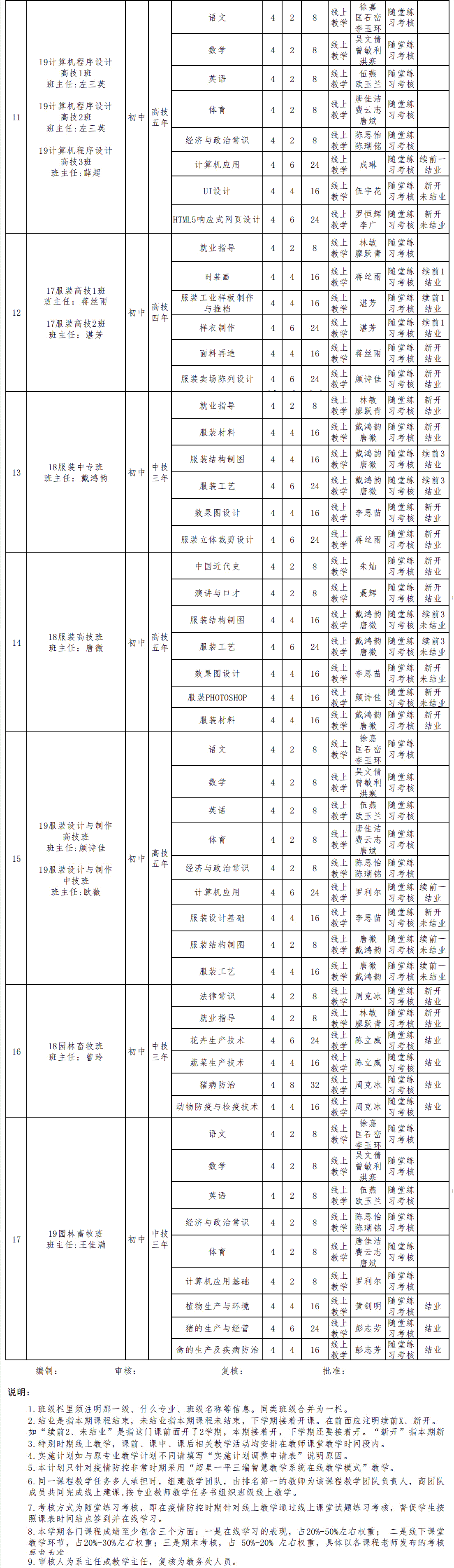 信息系2020年上學(xué)期疫情防控非常時(shí)期專業(yè)班級(jí)實(shí)施性教學(xué)計(jì)劃表
